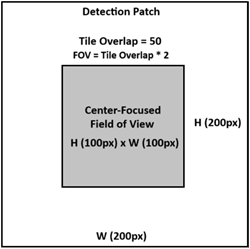 In the Tile Overlap field, enter the number of pixels that will define a margin on all sides of each detection patch, forming a center-focused field of view (FOV). For example: