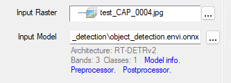 For ONNX models to run in ENVI Deep Learning, the following information is needed to translate data between ENVI Deep Learning and the ONNX model: