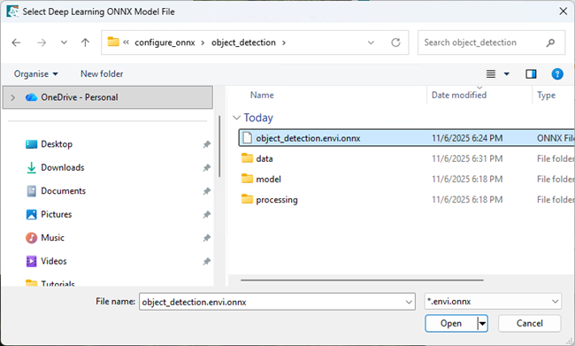 ENVI Deep Learning Tutorial: Configure ONNX Model