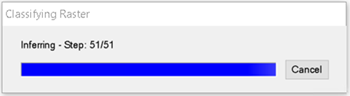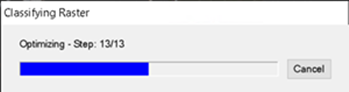 Click OK. A Classifying Raster progress dialog shows the status of processing. Optimized classification dialogs split the classification progress between grid and pixel/object classifiers.