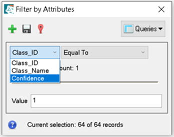In the Filter by Attributes dialog, click Class_ID and select Confidence.