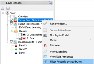In this tutorial you will use ENVI Deep Learning to learn the steps necessary to train multiple models to work together to optimize classification results. By optimizing classification results, you save processing time and reduce false positives with the upfront cost of training two models. You will train two models, then use them together during classification to quickly and accurately identify small boats. This tutorial introduces a new concept to ENVI Deep Learning referred to as grid. You will train a grid model, a pixel segmentation model, and perform optimized pixel classification. The tutorial workflow is compatible with ENVI Deep Learning version 4.0 and higher.