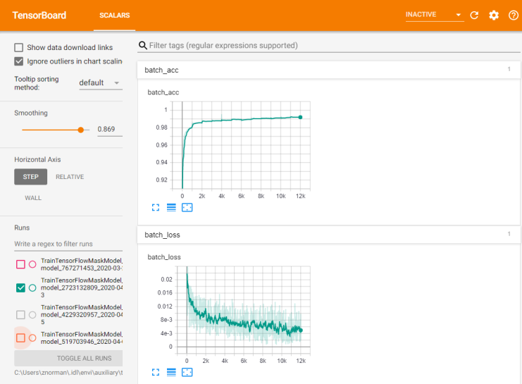 Here are some details about TensorBoard integration with ENVI Deep Learning: