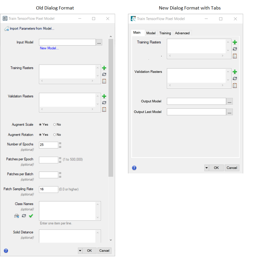 Below is an example of the changes using the Train TensorFlow Pixel Model dialog:
