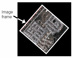 If you do not specify a cutline for a given image, ENVI uses the image frame by default. The image frame is the area of usable data within an image, excluding any background pixels: