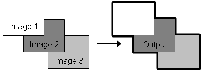 Use the Image order list to define how multiple images are ordered in the final output. This list is populated with the image filenames you added to the workflow. The image at the top of the list will be ordered first, followed by the second image, and so forth. Image ordering only pertains to areas of overlap between two or more images. The following figure shows an example.