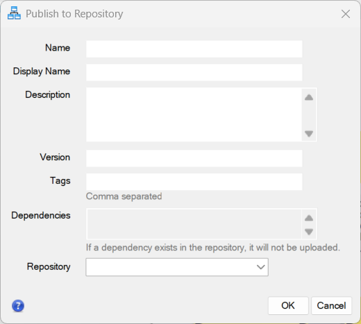 - PublishToRepository: Packages dependencies stored on a local machine and publishes them to the ENVI Repository server.