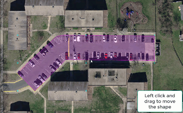 You can also rotate a ROI as follows: Draw a shape, then right-click in the view and select Complete shape type. Move the cursor near the center handle and click the Shift key. A rotation icon appears (see the circled icon in the figure below). Click and drag to rotate the object as needed, then release the mouse key.