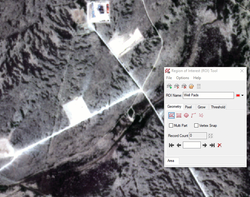 Use the new Magic Wand tool to grow ROI polygons from one or more "seed" pixels. This tool facilitates drawing ROI polygons around complex objects such as clouds, tree crowns, and lakes. With the Region of Interest (ROI) Tool displayed, hold down the Ctrl key and click on a pixel inside of the object. An initial polygon is drawn, and the Magic Wand Parameters dialog appears. You can adjust the threshold and experiment with other parameters to better refine the shape of the object.