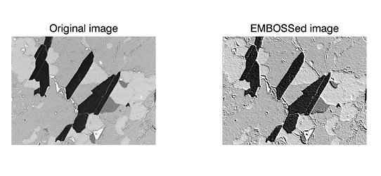 The EMBOSS function can be used to enhance the appearance of edges by making some regions of the image appear raised: