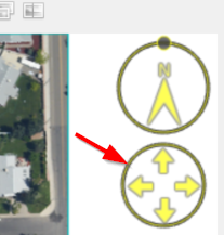 Fly controls also appear if you hover the cursor at the top right of the view. In the control circle, click on the arrows or on the lines adjacent to the arrows to fly through the view at 90 degree angles. Click on the circle's lines between the arrows to fly through the view at 45 degree angles.