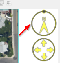 A rotate control also appears if you hover the cursor at the top right of the view. Click on the small circle above the control and drag it to rotate the view in the desired direction. To rotate the view in 45 degree increments, press and hold the Shift key as you drag the control with the mouse. To return the view to North up double-click in the center of the control circle.