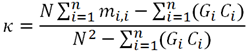 The kappa coefficient measures the agreement between classification and truth values. A kappa value of 1 represents perfect agreement, while a value of 0 represents no agreement. The kappa coefficient is computed as follows: