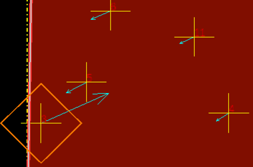 The tie points are shown in the Layout Manager with magenta-colored “X” symbols: