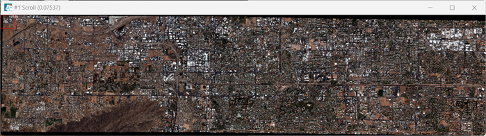7. Click Finish to create the orthorectified image. This process will take a long time, as the two QuickBird images are very large. Following is a true-color version of the output mosaic as it appears in the Scroll window: