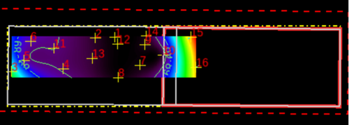 1. Enable the Residual Image option in the Layout Manager. A contour map is added to the Draw Area, showing the residual error throughout the area based on your GCP data. Purple-to-blue areas indicate the lowest residual errors, and red-to-white areas indicate the highest errors.
